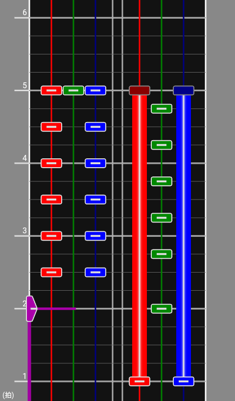 9拍目以降の右手の緑は、左の緑と同時押しになってるとこ以外押さなくていいので、押し分けられるなら絶対そっちのほうがいいんだが、指が貧弱すぎて無理だったので断念。
